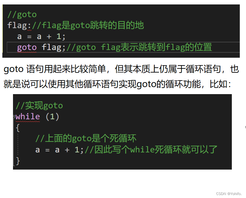 }goto 语句使用注意事项:在goto 前提前预判程序走向,避免造成死循环。