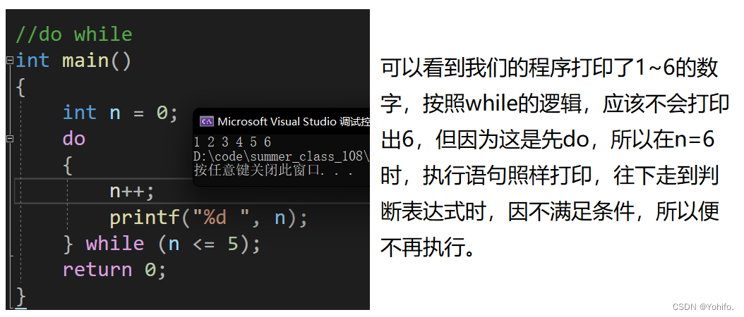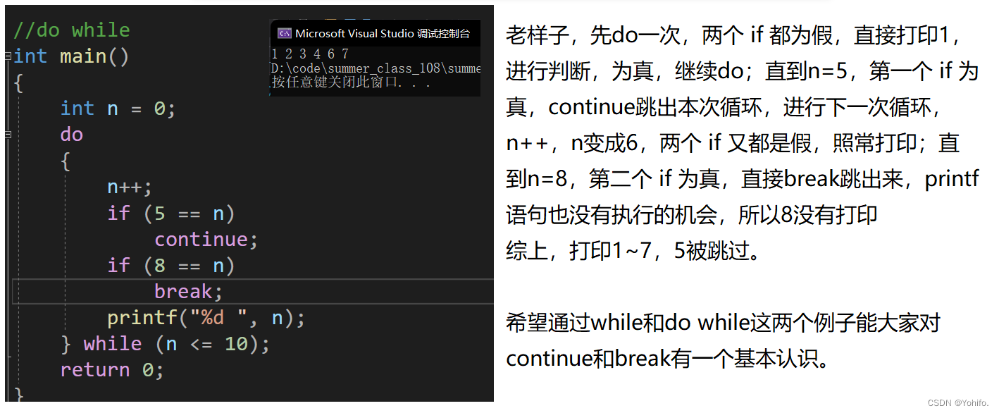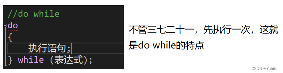 作为while语句的兄弟,do while语句跟while语句太像了,while中的知识在do while中都能用,唯一不同的是do while要先执行一次,再进行判断。