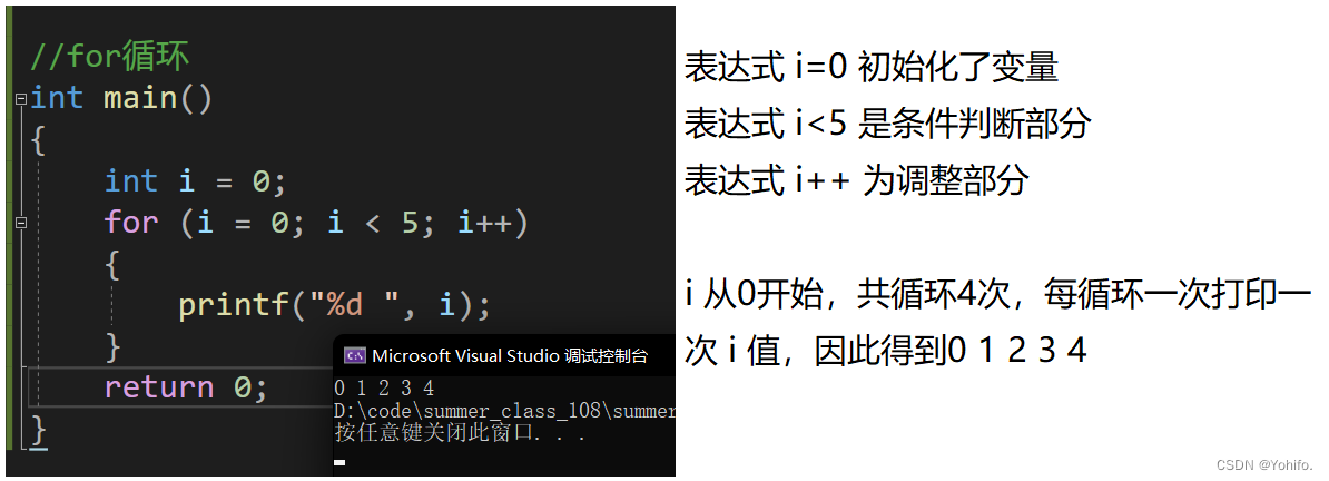 for 语句使用注意事项:不可在for 循环体内修改循环变量,防止 for 循环失去控制。建议for语句的循环控制变量的取值采用“前闭后开区间”写法。