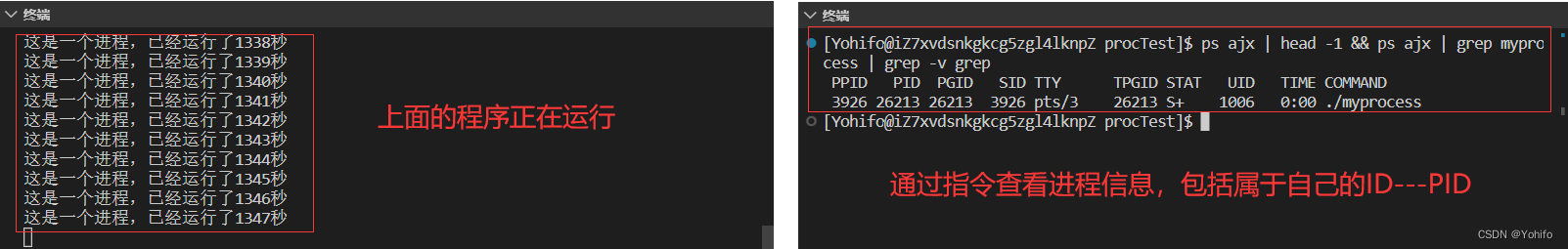 注: 当程序重新运行后,会生成新的 PID