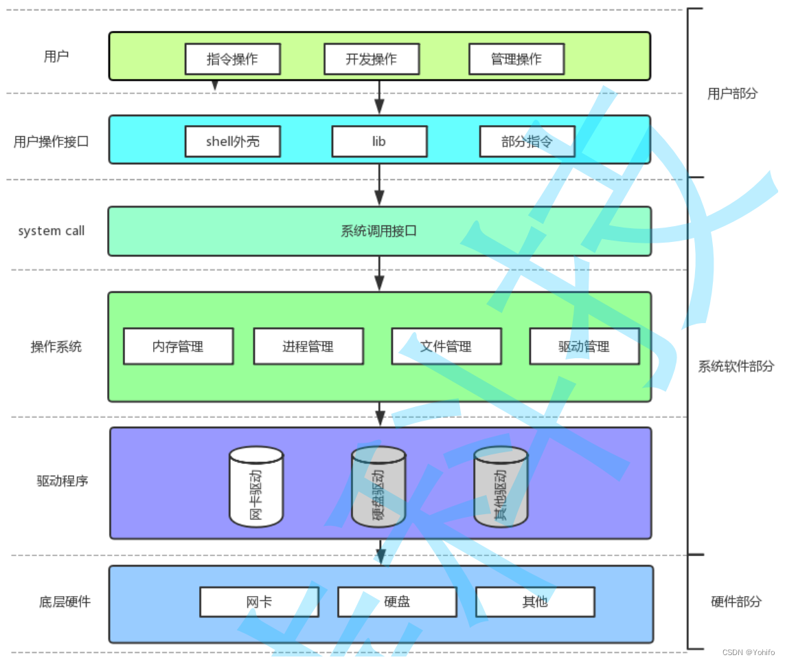 操作系统 是一个极其庞大的系统,操作系统 通过对下管理好软硬件资源的手段,对上给用户提供良好(安全、稳定、高效、功能丰富等)的执行环境,这是 操作系统 的目的注意: