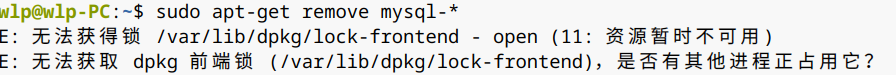 ubuntu终端上强制关闭正在进行的sudo apt-get install/update命令时,此apt-get进程还没有结束。如果再次运行apt-get命令安装软件时,就会出现上述错误,即有一个进程正在占据apt-get进程,由于它在运行时,会占用软件更新时的系统锁(简称系统更新锁),此时资源被锁