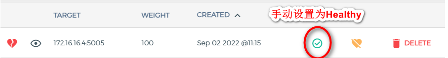 对此,你可以手动先将其设置为Healthy再做测试验证: