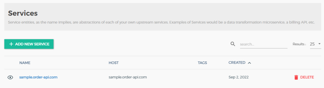 首先,在Konga的Services面板中,单击ADD NEW SERVICE按钮,输入以下信息: