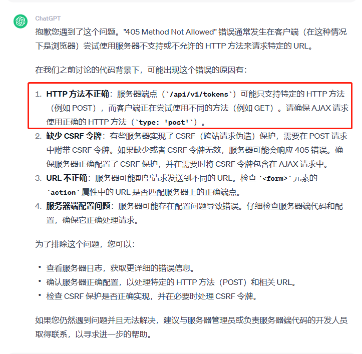 问题找到了,token获取访问的是http协议头,实际是https的,所以405了