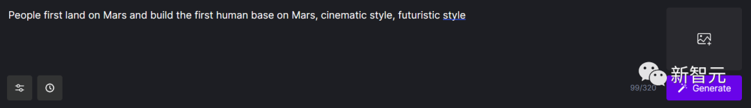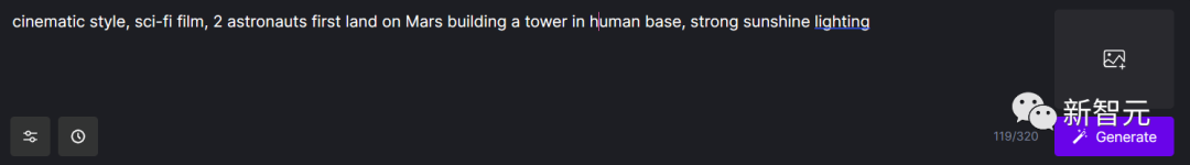 进入页面后,先试一个简单的prompt:「人类第一次登陆火星,建造基地的场景」。