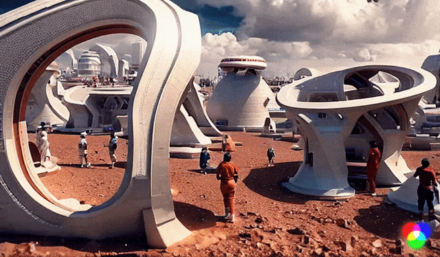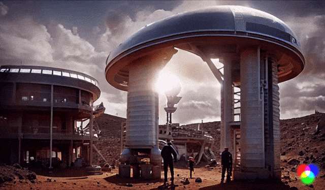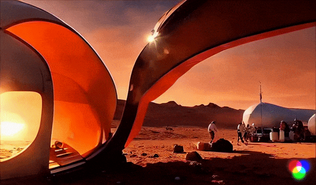 于是小编又加了一部分和环境风格相关的内容:「人类第一次登陆火星,建造了火星基地,电影风格画面,未来风格。」