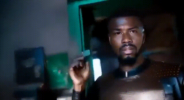 很快,一个响指,又变身成了像是「星球崛起」里的主角,在残垣断壁的战场上穿梭。