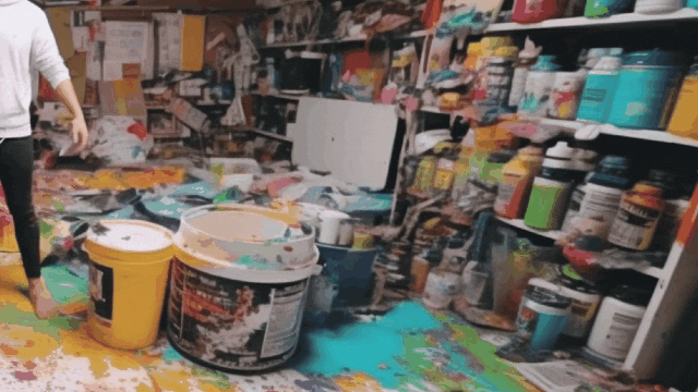 或者,在工作室中拿一些油漆往周围扔出去,然后自己用相机抓拍。又费时又费力,还把周围环境搞得一片凌乱。