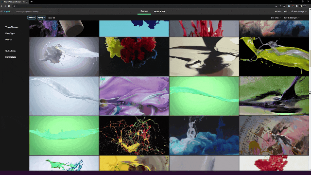 以往,如果剪刀手们想寻找到某个合适的素材(比如一些在空间中飞溅的颜色),得去stock footage这种素材网站去搜索,素材的范围很有限,而且人人都可用,素材并不是独家的。