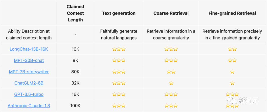 根据研究人员测试的结果,闭源的商业长上下文模型确实能兑现它们的承诺:gpt-3.5-16k和Anthropic Claude在基准测试中几乎都达到了完美的性能。