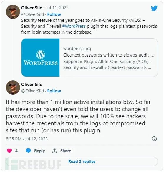 https://www.bleepingcomputer.com/news/security/wordpress-aios-plugin-used-by-1m-sites-logged-plaintext-passwords/
