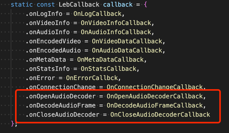 1. 增加音频解码回调实现,并设置相关回调函数接口