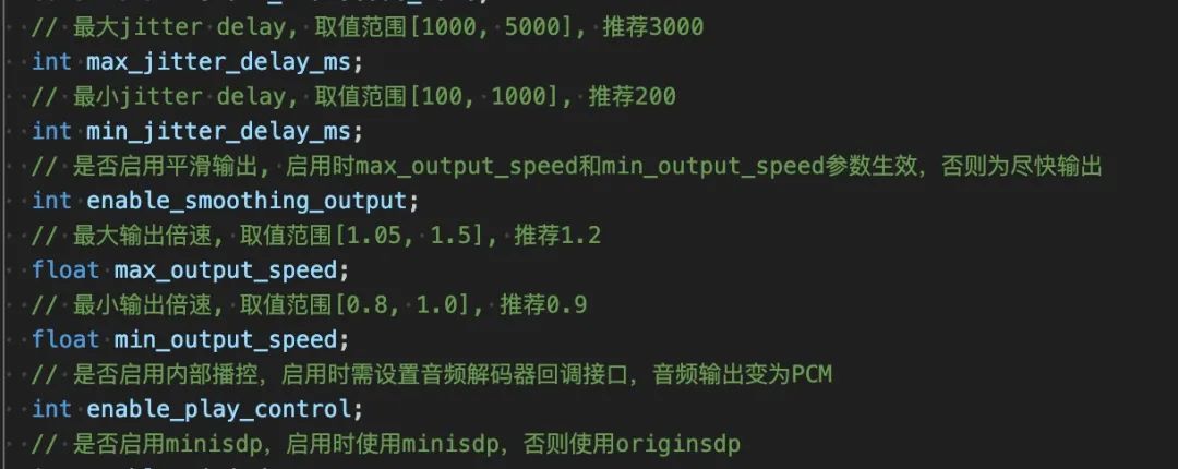 cfg.min_jitter_delay_ms = 200; //SDK内部JitterBuffer下限,可以控制延时下限