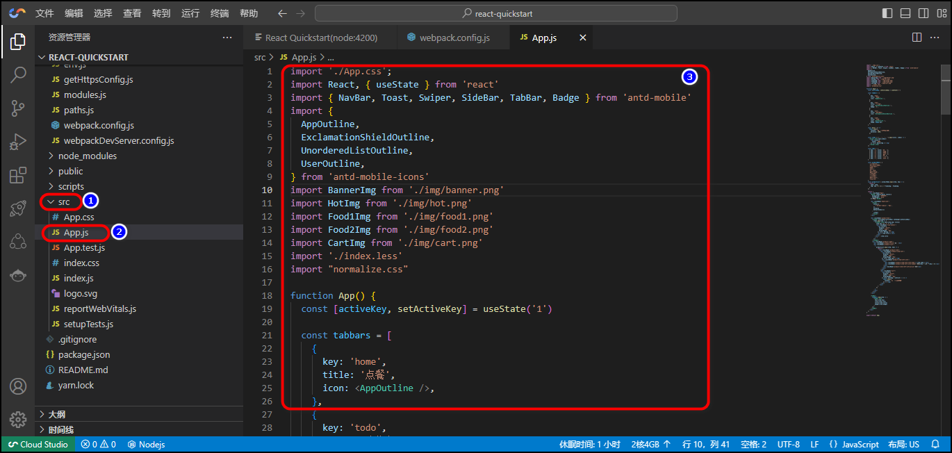 以下是点餐系统的主要业务代码,复制到src/App.js直接替换即可。