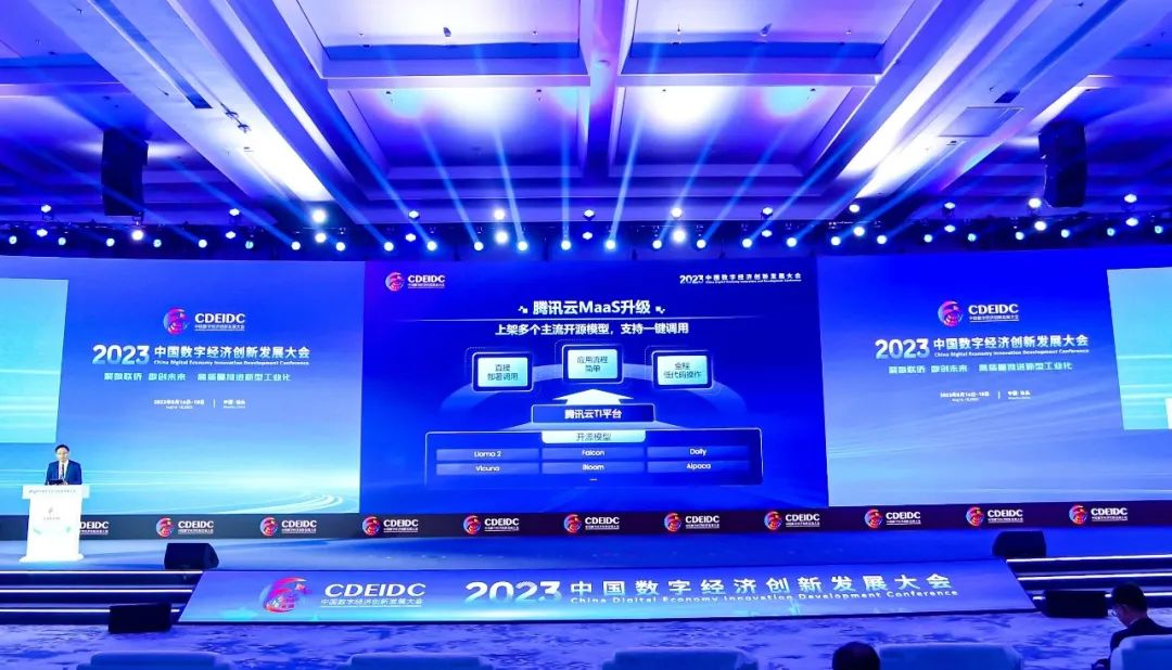 腾讯集团高级执行副总裁、云与智慧产业事业群CEO汤道生在大会上宣布了腾讯云MaaS最新升级。