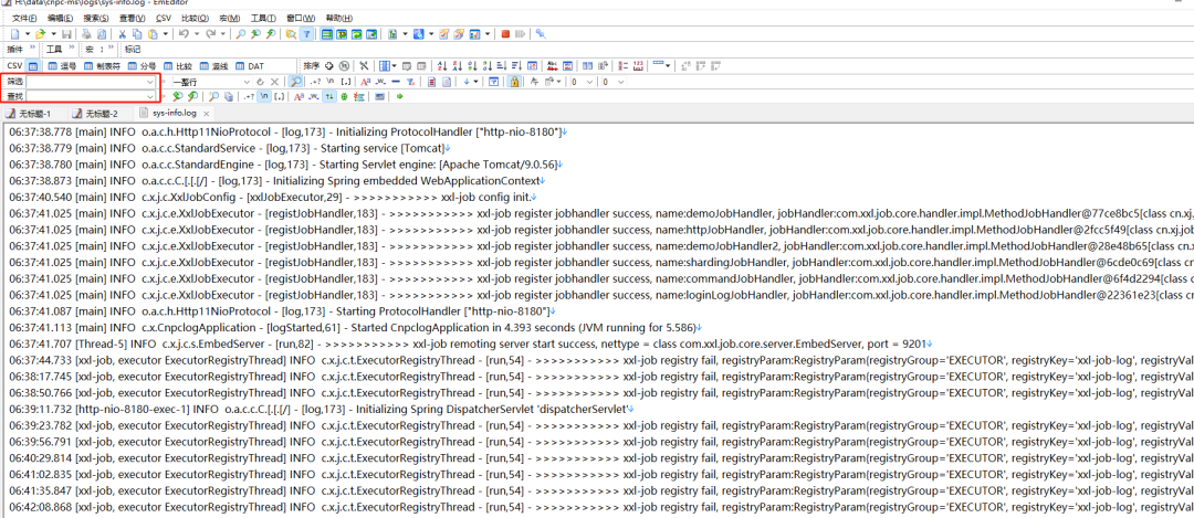 我们如果可以拉取日志文件到本地的话也可以使用EmEditor这款文本处理器去查询日志,他可以加载好几个G的日志文件,并轻松的筛选出我们需要查询的日志