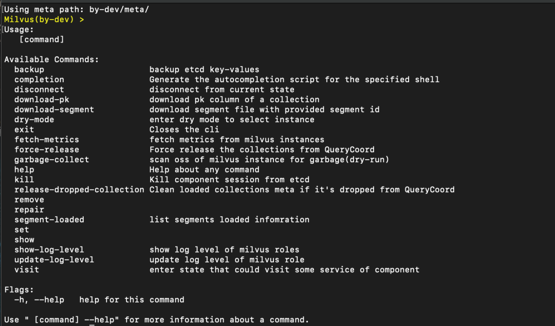 Milvus 默认配置 etcd meta 路径在 by-dev下,--rootPath 参数可忽略。