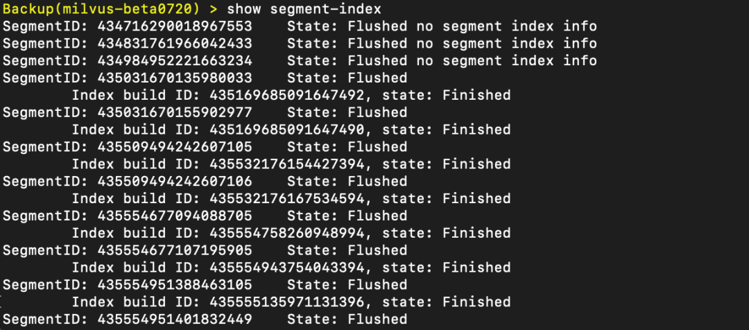 如:show segment-index --collection 435617817281691649