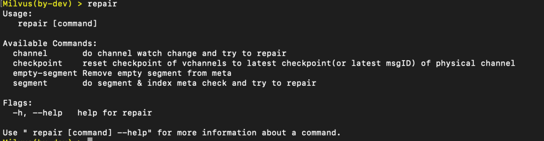 指令:repair-segment --collection [collection_id]