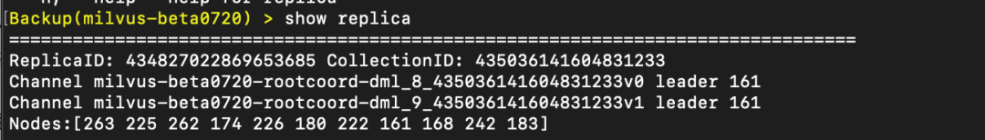 显示已加载 collection 的信息,其中包含 replica 数量信息。