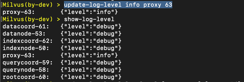 示例:update-log-level info proxy 63