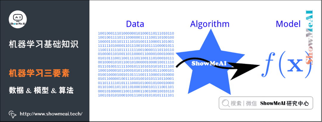 机器学习三要素包括数据、模型、算法。这三要素之间的关系,可以用下面这幅图来表示: