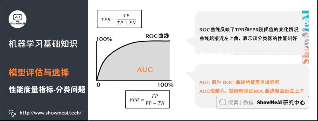 ROC曲线(Receiver Operating Characteristic Curve)全称是「受试者工作特性曲线」。综合考虑了概率预测排序的质量,体现了学习器在不同任务下的「期望泛化性能」的好坏。ROC曲线的纵轴是「真正例率」(TPR),横轴是「假正例率」(FPR)。