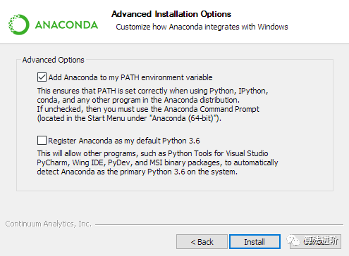 安装也很简单,一路确认就安装好了。这里可以勾选Add path 就可以配置好环境变量,也可以再勾选Anaconda作为默认Python版本,后面比较省心。