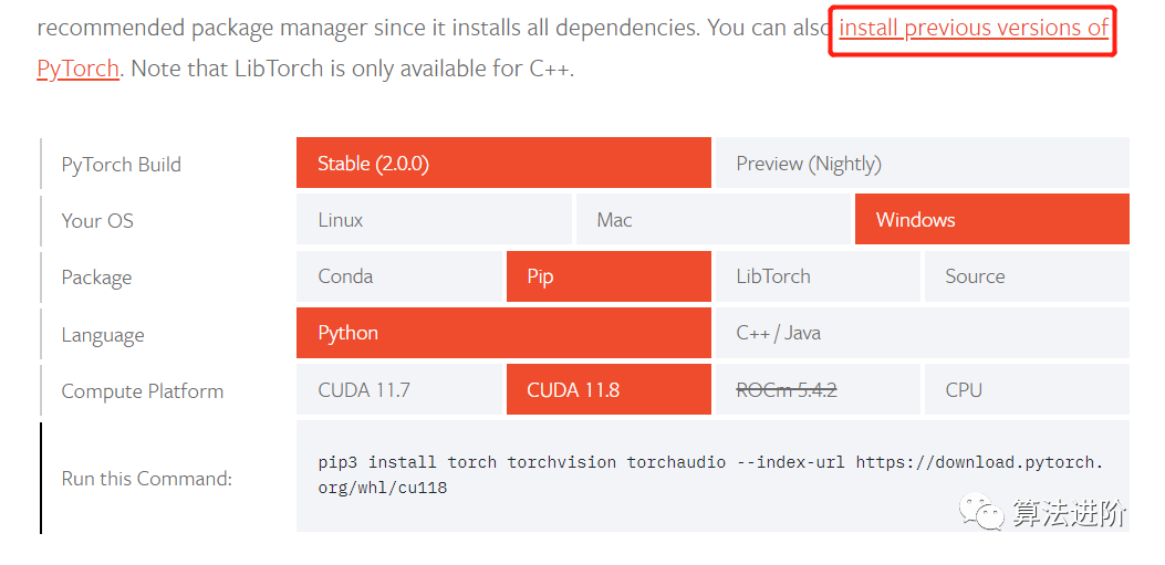 官网会很友好地给出相应的所选的cuda版本对应的安装命令,