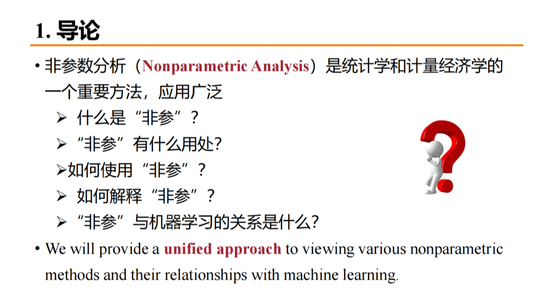 前言:非参数分析是统计学和计量经济学的一个重要方法工具,在研究与实践中有着广泛的应用。本文为众多的非参数分析方法建立个统一的视角,阐释非参数分析的性质、作用、发展、使用方法以及经济解释。洪永淼教授首先从计量经济学研究中的参数模型引入,指出了参数模型的优点和不足,从而过渡到非参数统计方法的介绍。期间,洪教授系统地介绍了非参数方法的发展历史、模型种类和基本原理,并着重讲解了Global Smoothing和Local Smoothing两类方法的理论和联系。最后,洪教授衔接到现代大数据时代的机器学习研究,通过对多种机器学习的理论和方法介绍,讨论非参数方法与机器学习的联系与区别,指出机器学习很多方法本质和基础就是非参数统计模型,并可从非参数分析角度解释了机器学习方法在预测能力上表现优良的原理。
