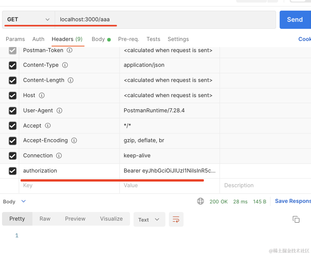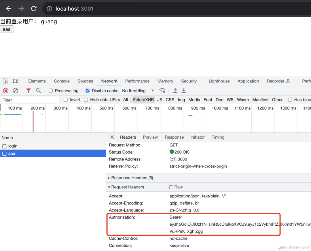 前面讲过,jwt 是通过 authorization 的 header 携带 token,格式是 Bearer xxxx