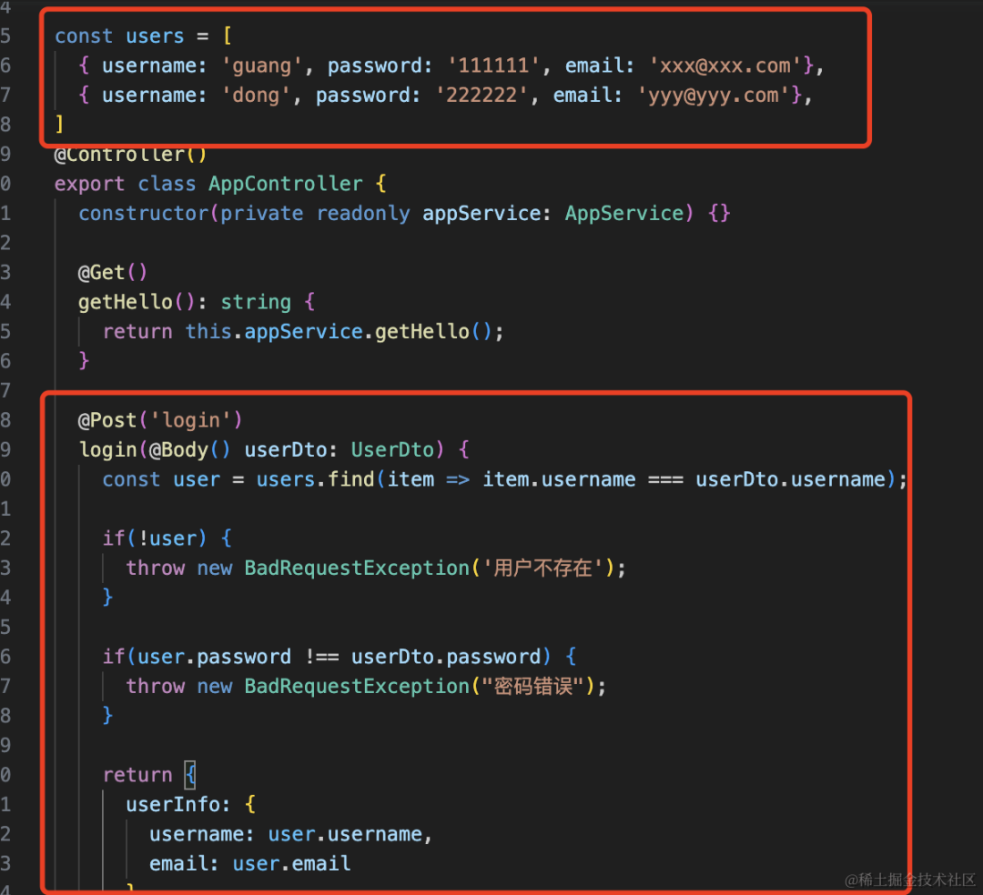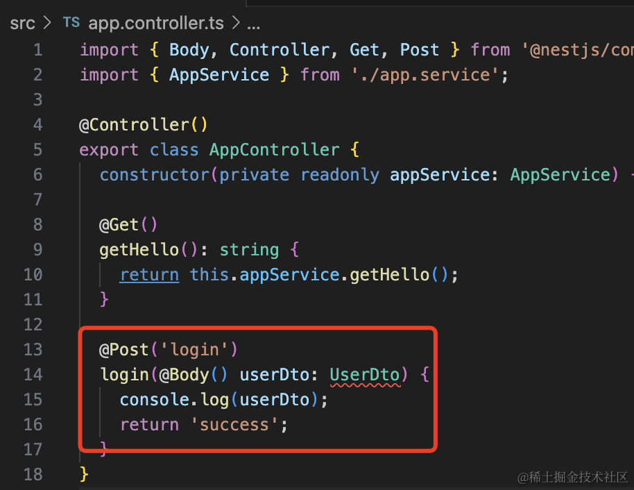 在 AppController 添加一个 login 的 post 接口: