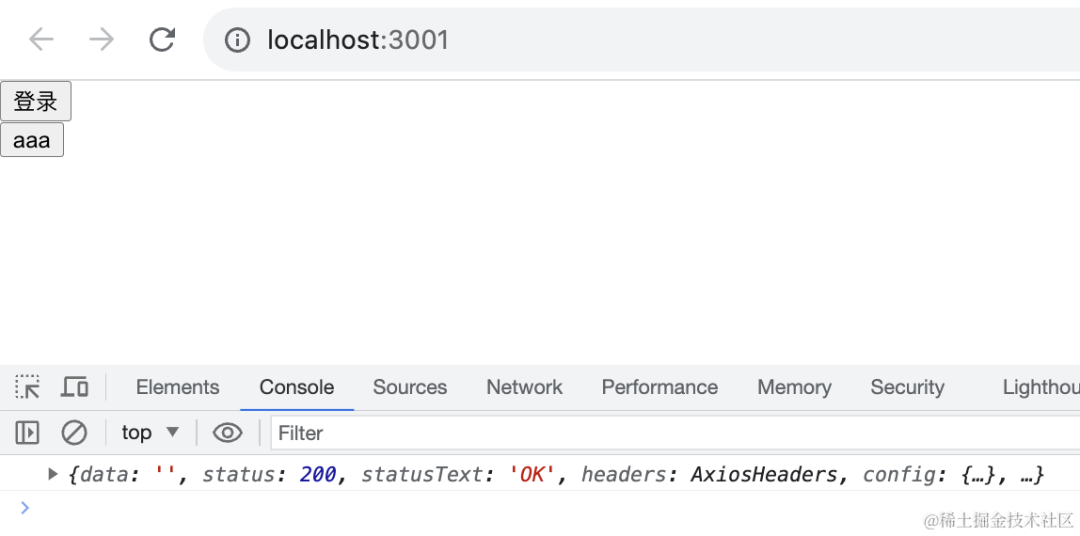 点击 aaa 按钮,报错了,因为接口返回了 401。