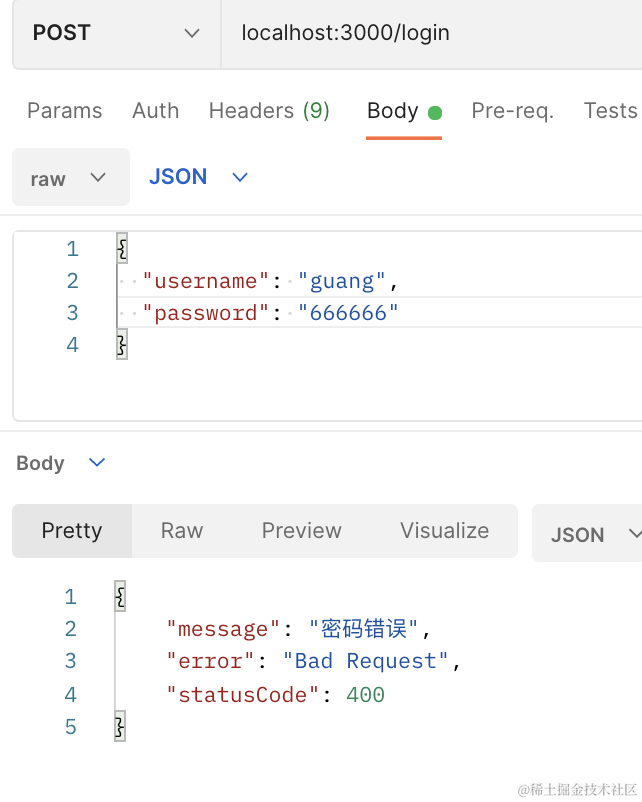 throw new BadRequestException("密码错误");