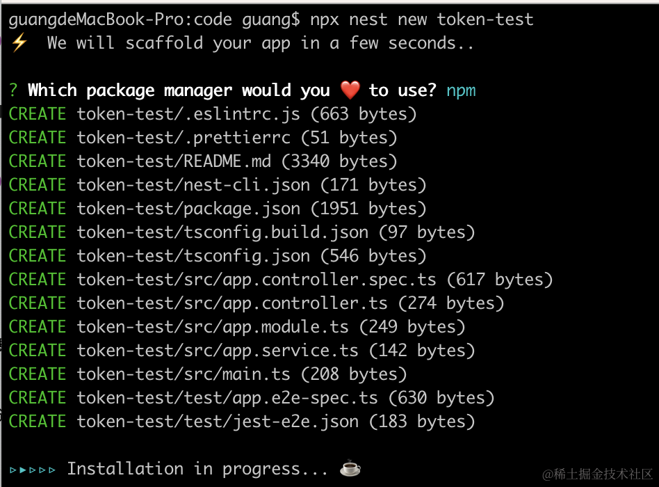 npx nest new token-test