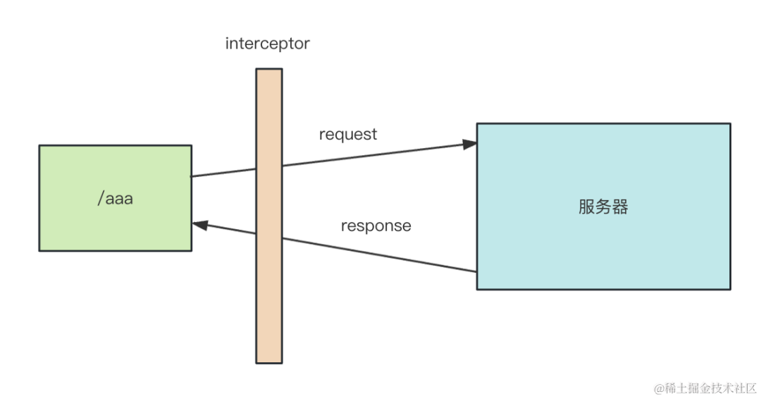 interceptor 是 axios 提供的机制,可以在请求前、响应后加上一些通用处理逻辑: