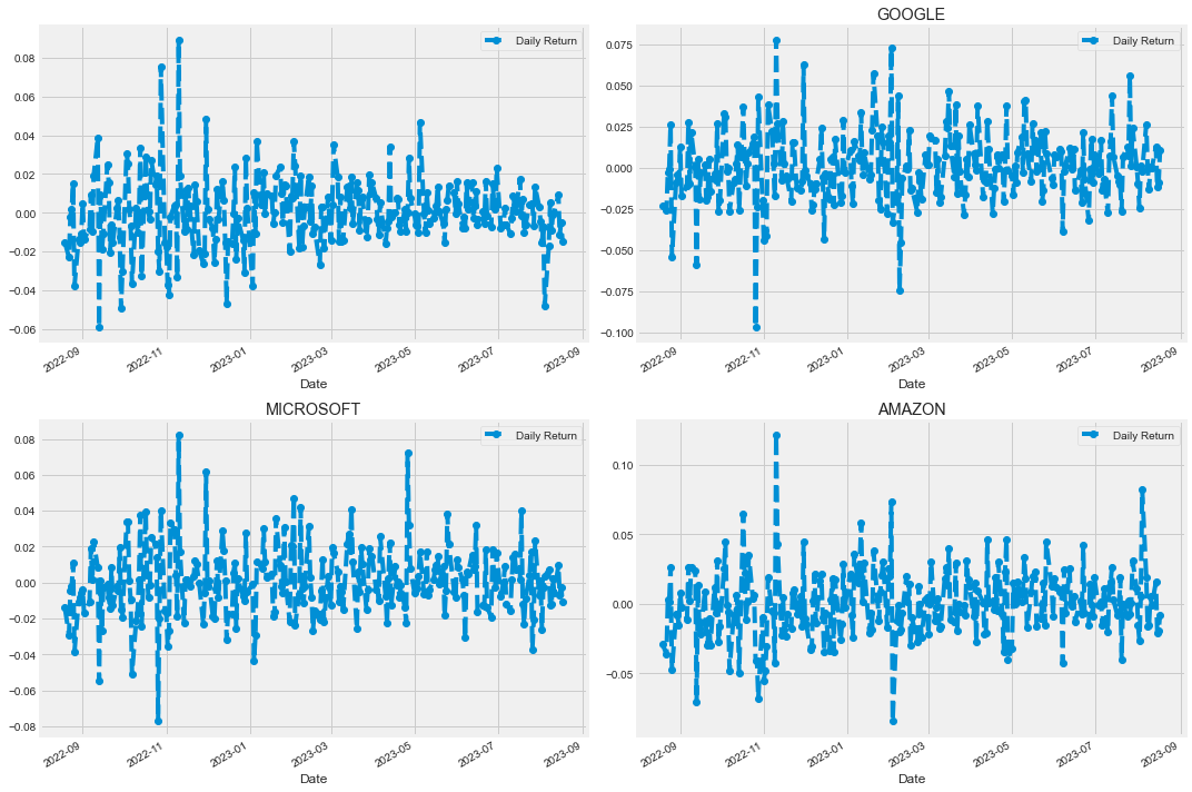 tech_list = ['AAPL', 'GOOG', 'MSFT', 'AMZN'] 设置股票的起止时间: