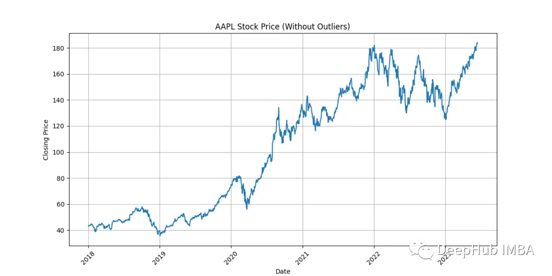 上图显示了去除识别的异常值后的时间序列数据。通过减少极值的影响,去除异常值有助于提高异常检测算法的准确性。