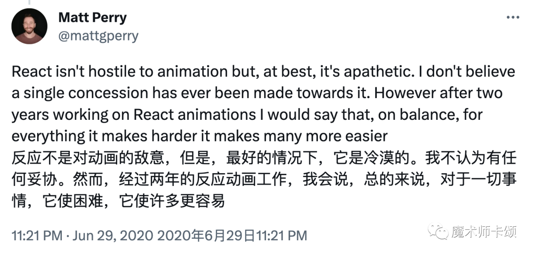 的作者认为,由于开发者很难控制并发更新的完整生命周期,所以很难在并发更新时表达animation