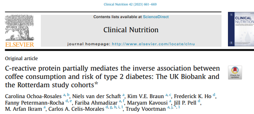 (1)通过调查分析习惯饮用咖啡者体内的炎症和胰岛素耐药性,揭示了咖啡是如何通过身体内的炎症生物标志物降低2型糖尿病(T2D)的风险。