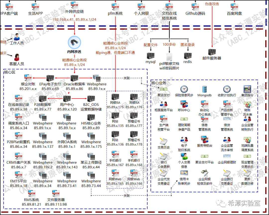 大家好,我是ABC_123。本期分享一篇ABC_123曾经做的针对一家银行的红队评估项目,持续时间两周,难度非常大,但是最终打到了银行核心业务区,今天就复盘一下全过程,希望红蓝双方都能得到一些启示,这也是“未知攻、焉知防”的道理。
