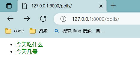 重启服务器,进入 http://localhost:8000/polls/ ,你会发现有问题的链接是绿色的,这意味着你追加的样式表起作用了。