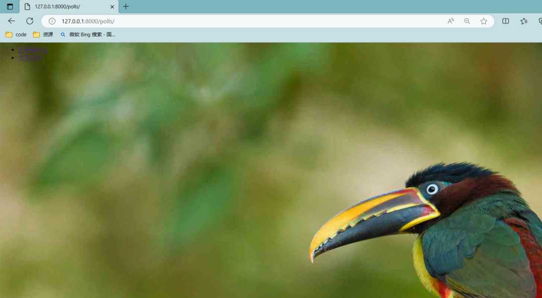}浏览器重载http://localhost:8000/polls/,你将见到这张背景图。