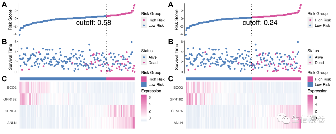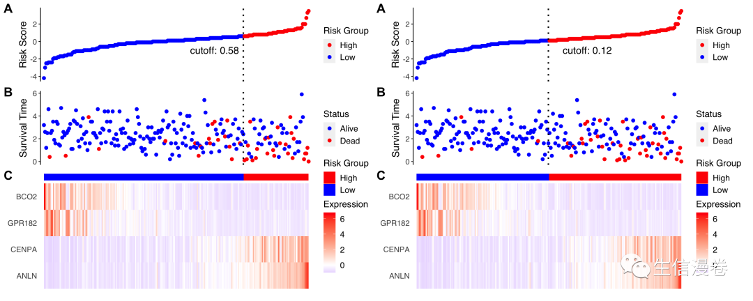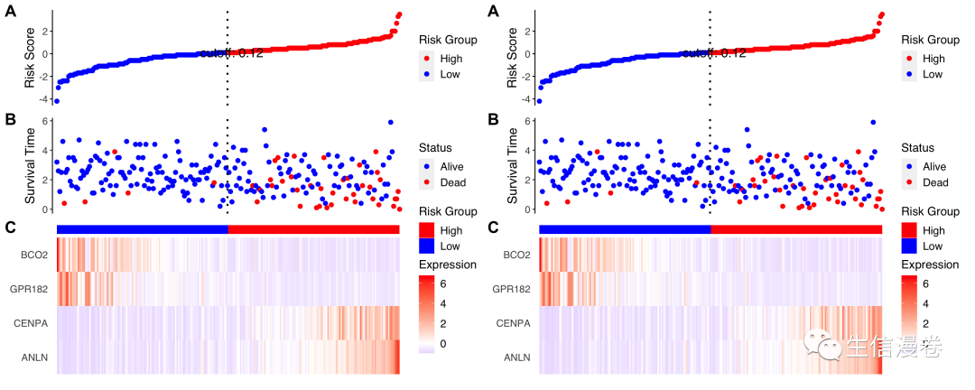 title.A.ylab='Risk Score', # 图A中y轴的title