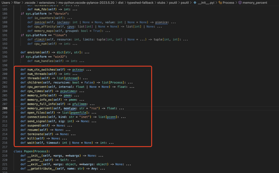 在psutil中,rss代表“常驻集大小(Resident Set Size)”,它是进程使用的物理内存的大小(即实际占用的内存大小),单位为字节(bytes)。而vms则代表“虚拟内存大小(Virtual Memory Size)”,它是进程使用的虚拟内存的大小,包括进程使用的物理内存和交换空间(swap space)大小,单位也是字节。