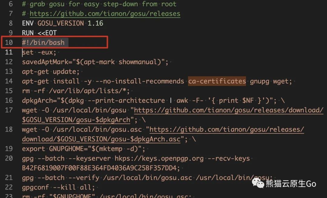 划重点:这就是 一个Shell脚本 了。 换句话说, 在本地测试完成之后, 可以直接复制到 Dockerfile 中了。而之前, 还需要使用 && 链接整理命令。