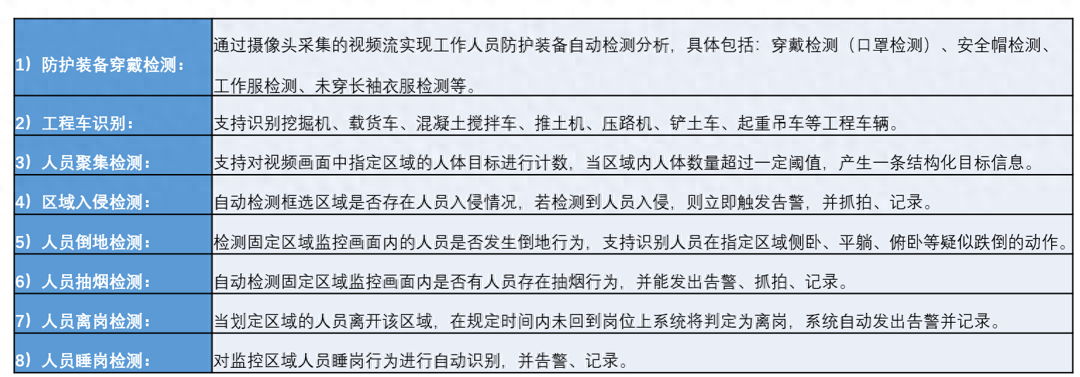 TSINGSEE青犀视频AI算法系统自研算法40+种,覆盖公安、城管、社区、工地、环保、消防、森林、交通等领域。