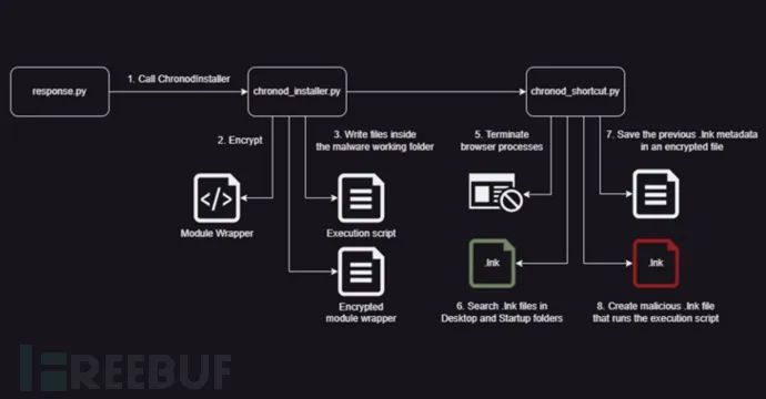 这种方法包括更改与网页浏览器(如谷歌 Chrome、微软 Edge、Brave 和 Avast 安全浏览器)相关的所有快捷方式文件(LNK),以执行 Chronod 模块,而不是实际的浏览器。