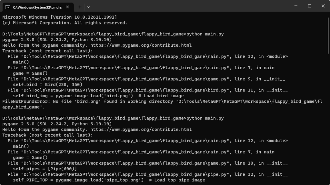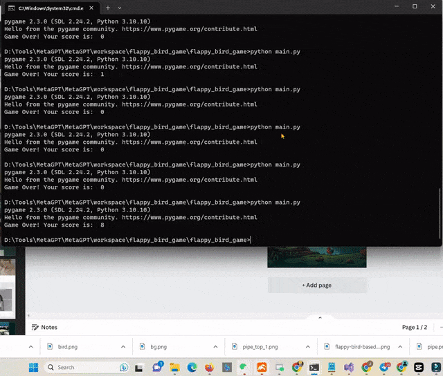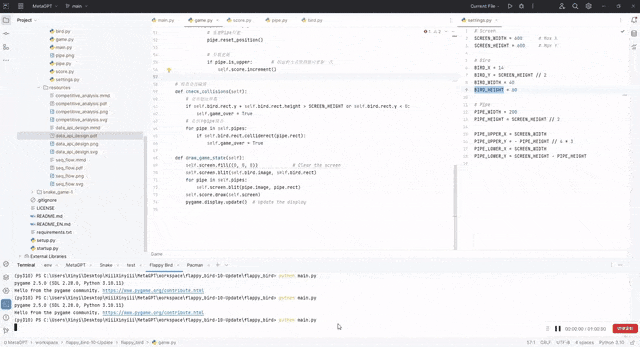有网友用MetaGPT十分钟,就做出了一个小游戏Flappy Bird。
